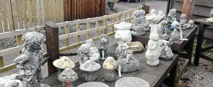 From 2022 there is also a range of stone ornaments. Homemade bird tables are also usually available. For boaters wishing to visit the shop, it is best to moor in the longer pound between locks 14 and 15, rather than try and moor outside the shop or on the short stretch of towpath opposite the shop.