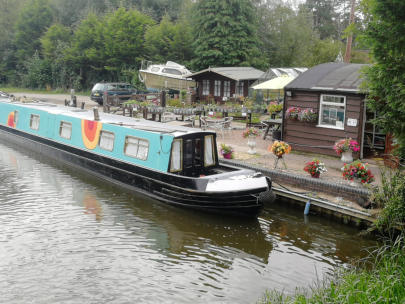 The shop was started when we first moved here in 1986. It is seasonal, usually opening from mid March until mid November coinciding with the main boating period (10.30 to 5pm, closed Fridays). We stock maps & guides, gifts & souvenirs, some of which are only available from us. Ice creams, hot & cold drinks and homemade cakes can be taken away or consumed in the small seating area in front of the shop. The shop is very dog friendly for well behaved dogs on leads. There is usually a range of plants for sale, and a selection of original paintings of local canal scenes painted by a local artist. From 2022 there is also a range of stone ornaments. Homemade bird tables are also usually available. For boaters wishing to visit the shop, it is best to moor in the longer pound between locks 14 and 15, rather than try and moor outside the shop or on the short stretch of towpath opposite the shop.